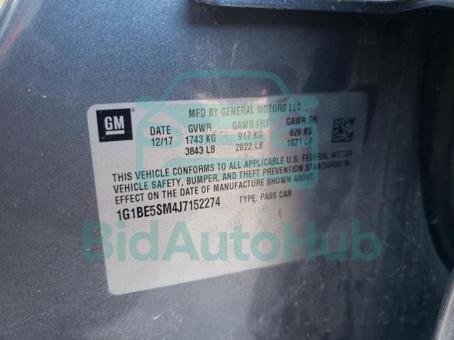 For a full understanding of the condition of this CHEVROLET CRUZE 2018 - VIN: 1G1BE5SM4J7152274, it is strongly advised to analyze all available materials β both technical specifications and auction photographs. Such analysis provides the most objective picture of the carβs history, its advantages, and its potential defects.