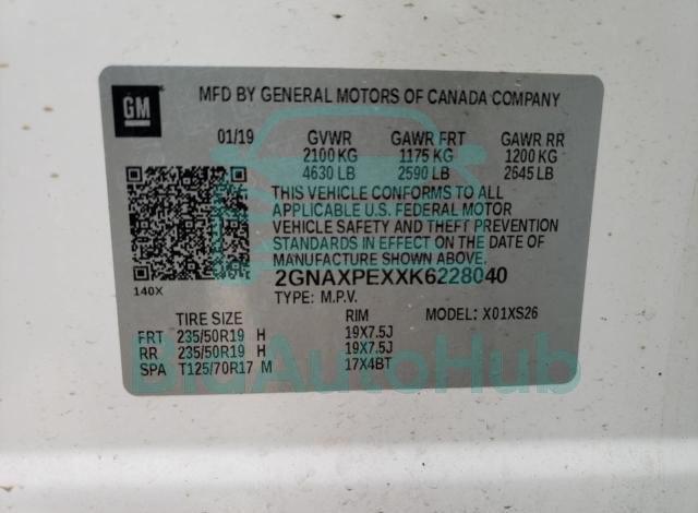 For a full understanding of the condition of this CHEVROLET EQUINOX 2019 - VIN: 2GNAXPEXXK6228040, it is strongly advised to analyze all available materials β both technical specifications and auction photographs. Such analysis provides the most objective picture of the carβs history, its advantages, and its potential defects.