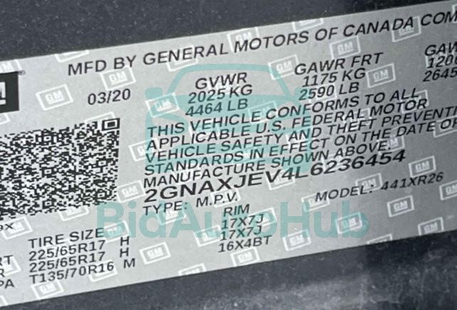 This CHEVROLET EQUINOX 2020 - VIN: 2GNAXJEV4L6236454 was originally purchased at one of the major insurance auctions in the United States or Canada. The vehicle history is tied directly to its VIN code, which makes it possible to track the origin, condition, and circumstances of the sale. The photographs provided represent the actual state of the car at the moment of auction and serve as an important visual record of its technical and cosmetic condition.