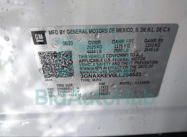 For a full understanding of the condition of this CHEVROLET EQUINOX 2020 - VIN: 3GNAXKEV0LL284521, it is strongly advised to analyze all available materials β both technical specifications and auction photographs. Such analysis provides the most objective picture of the carβs history, its advantages, and its potential defects.
