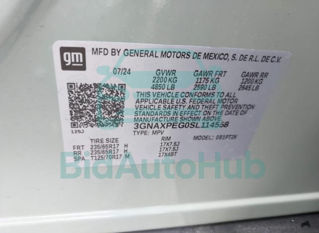 This CHEVROLET EQUINOX 2025 - VIN: 3GNAXPEG0SL114558 was originally purchased at one of the major insurance auctions in the United States or Canada. The vehicle history is tied directly to its VIN code, which makes it possible to track the origin, condition, and circumstances of the sale. The photographs provided represent the actual state of the car at the moment of auction and serve as an important visual record of its technical and cosmetic condition.
