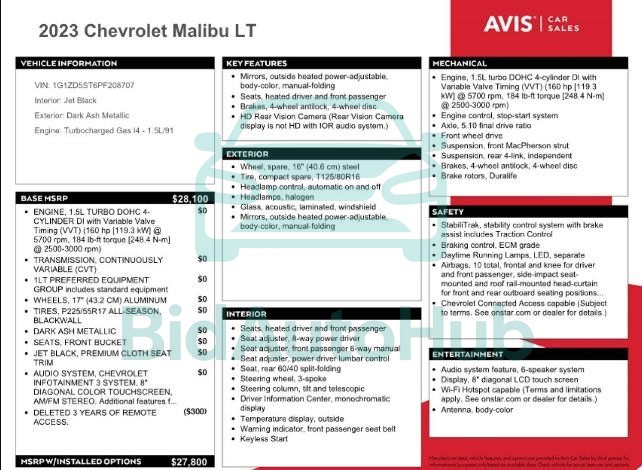 For a full understanding of the condition of this CHEVROLET MALIBU 2023 - VIN: 1G1ZD5ST6PF208707, it is strongly advised to analyze all available materials β both technical specifications and auction photographs. Such analysis provides the most objective picture of the carβs history, its advantages, and its potential defects.