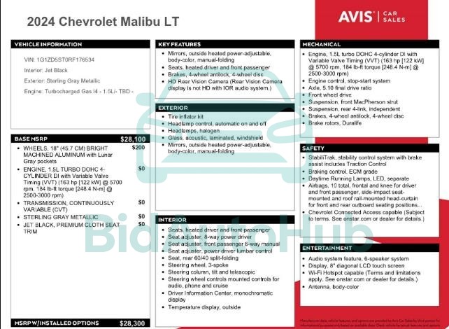 For a full understanding of the condition of this CHEVROLET MALIBU 2024 - VIN: 1G1ZD5ST0RF176534, it is strongly advised to analyze all available materials β both technical specifications and auction photographs. Such analysis provides the most objective picture of the carβs history, its advantages, and its potential defects.