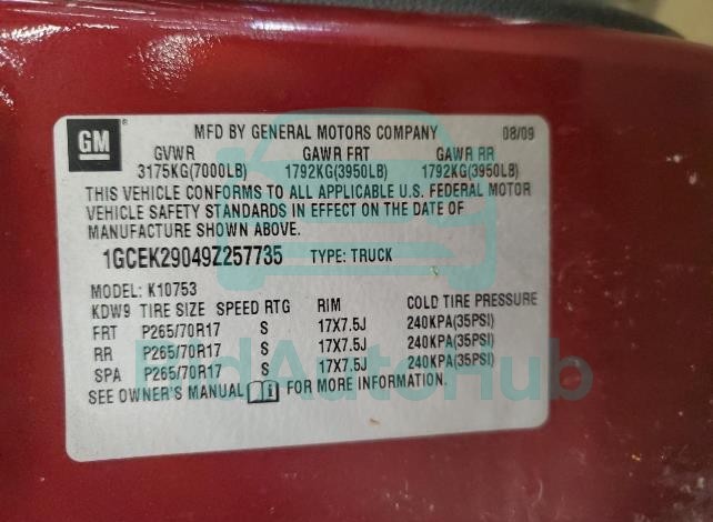 Each lot presented on our website includes comprehensive information tied to the VIN code. This allows users to cross-check vehicle data, verify the history of ownership, and confirm accident or insurance records. The CHEVROLET SILVERADO 2009 - VIN: 1GCEK29049Z257735 corresponds to a car that was listed through one of the large insurance auctions in USA, which guarantees traceability and transparency of the information.