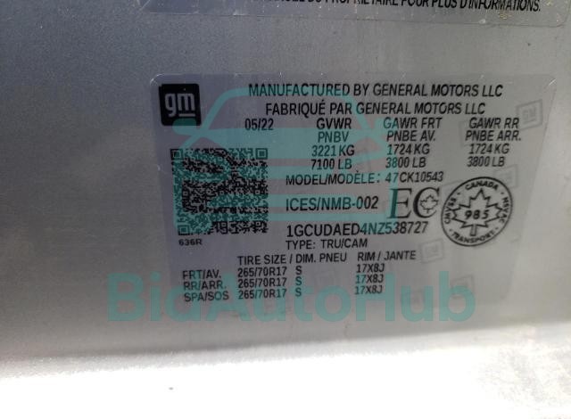 | VIN | 1GCUDAED4NZ538727 |