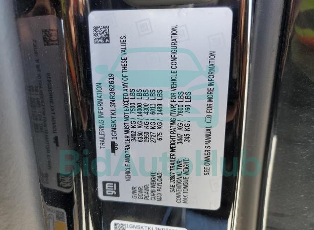 | VIN | 1GNSKTKL3NR362619 |