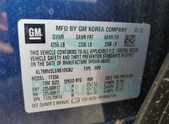 | VIN | KL79MVSL6NB109362 |