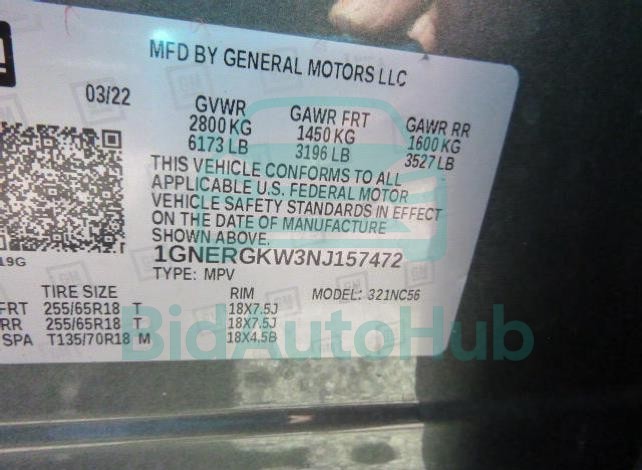 | VIN | 1GNERGKW3NJ157472 |