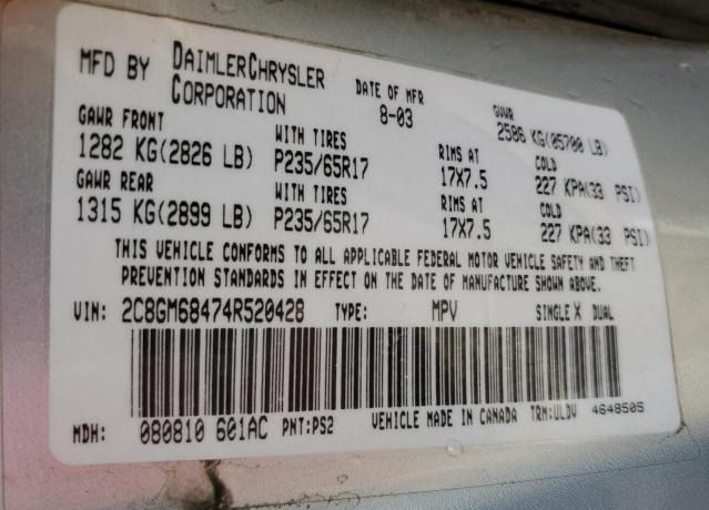 | VIN | 2C8GM68474R520428 |