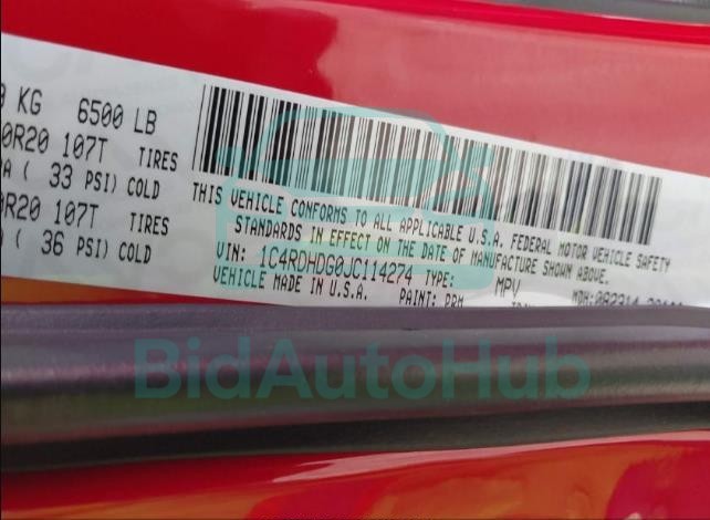 | VIN | 1C4RDHDG0JC114274 |