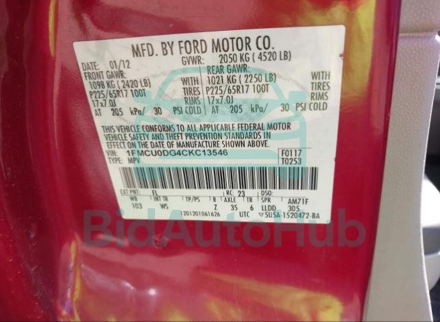 FORD ESCAPE 2012 — VIN: 1FMCU0DG4CKC13546