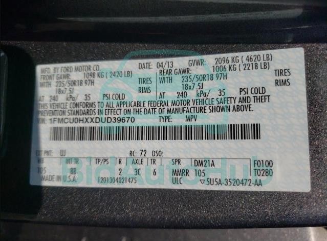 | VIN | 1FMCU0HXXDUD39670 |