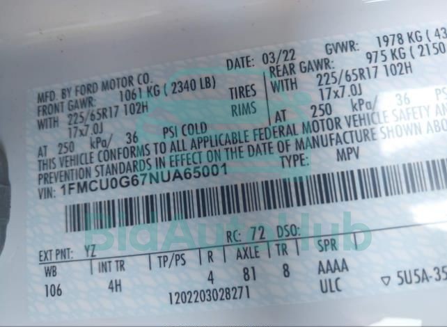 | VIN | 1FMCU0G67NUA65001 |