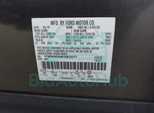 | VIN | 1FM5K8D84KGB32277 |