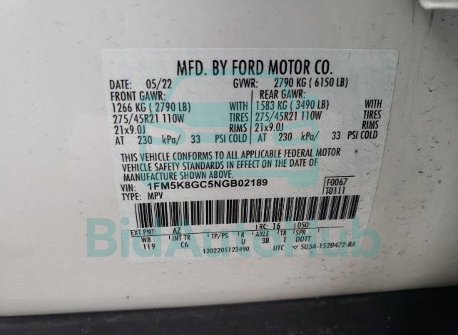 | VIN | 1FM5K8GC5NGB02189 |