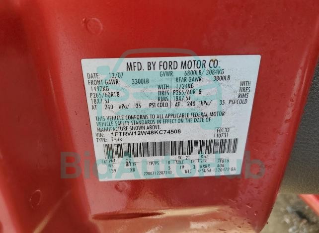 | VIN | 1FTRW12W48KC74508 |