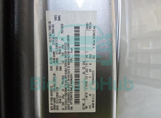 Each lot presented on our website includes comprehensive information tied to the VIN code. This allows users to cross-check vehicle data, verify the history of ownership, and confirm accident or insurance records. The FORD F-150 2020 - VIN: 1FTEW1E54LFA84291 corresponds to a car that was listed through one of the large insurance auctions in USA, which guarantees traceability and transparency of the information.