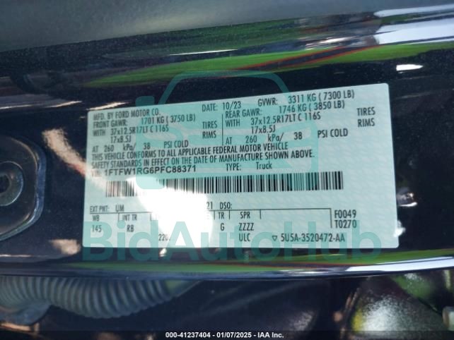 Each lot presented on our website includes comprehensive information tied to the VIN code. This allows users to cross-check vehicle data, verify the history of ownership, and confirm accident or insurance records. The FORD F-150 2023 - VIN: 1FTFW1RG6PFC88371 corresponds to a car that was listed through one of the large insurance auctions in USA, which guarantees traceability and transparency of the information.