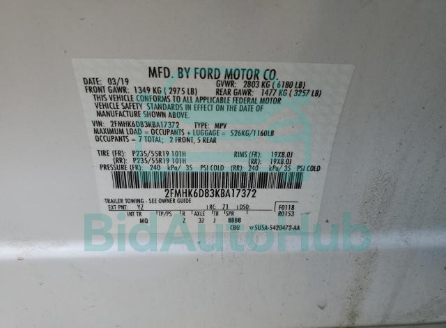 | VIN | 2FMHK6D83KBA17372 |