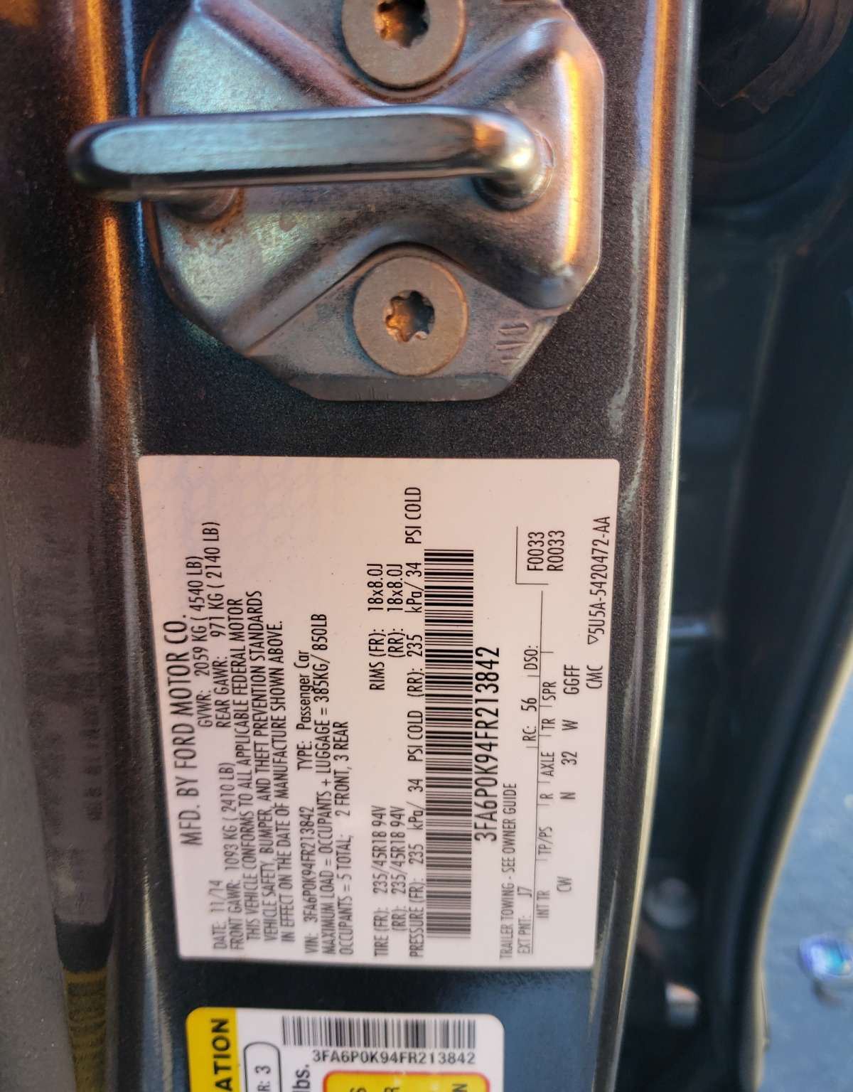 | VIN | 3FA6P0K94FR213842 |