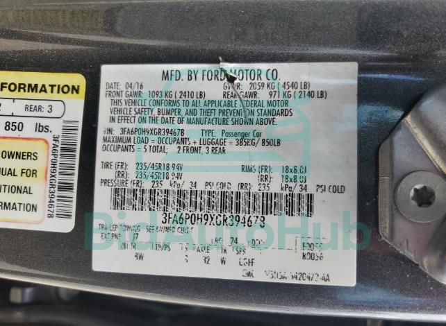 FORD FUSION 2016 — VIN: 3FA6P0H9XGR394678