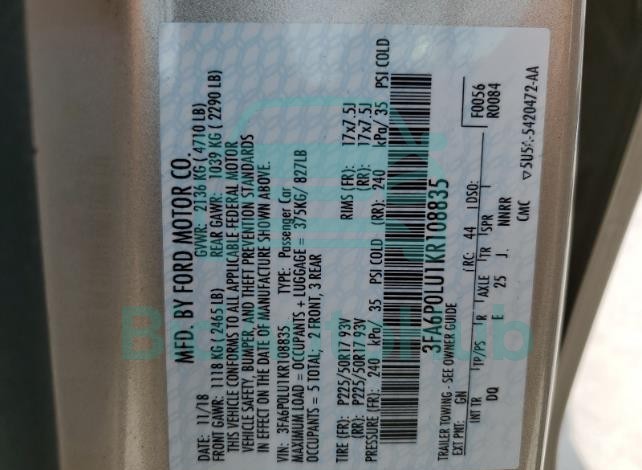 | VIN | 3FA6P0LU1KR108835 |