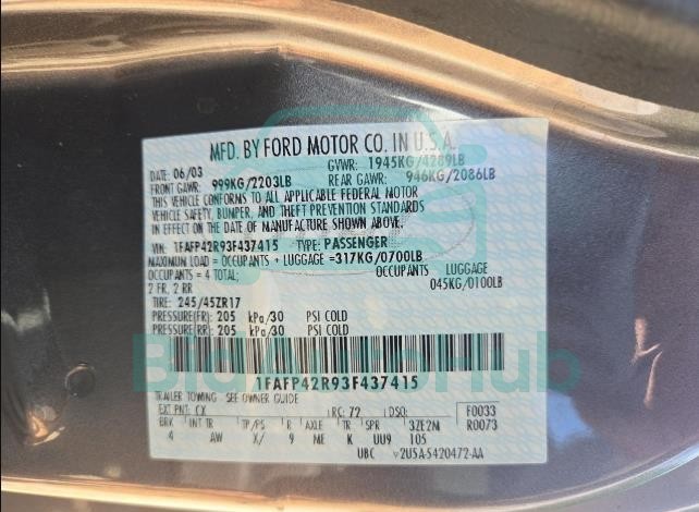 For a full understanding of the condition of this FORD MUSTANG 2003 - VIN: 1FAFP42R93F437415, it is strongly advised to analyze all available materials β both technical specifications and auction photographs. Such analysis provides the most objective picture of the carβs history, its advantages, and its potential defects.