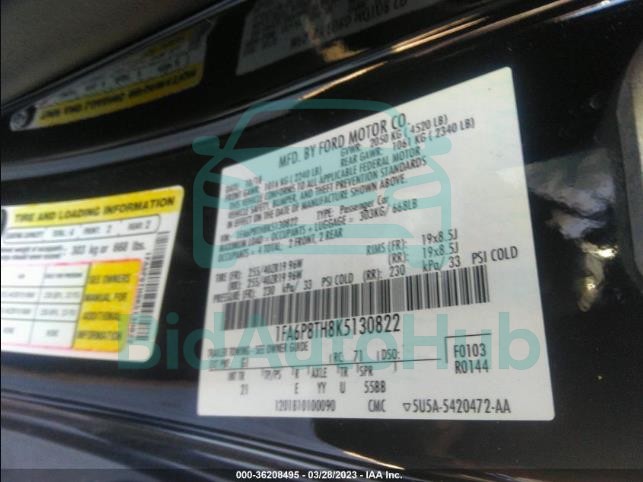 | VIN | 1FA6P8TH8K5130822 |
