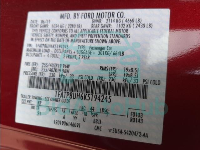 | VIN | 1FATP8UH6K5194245 |