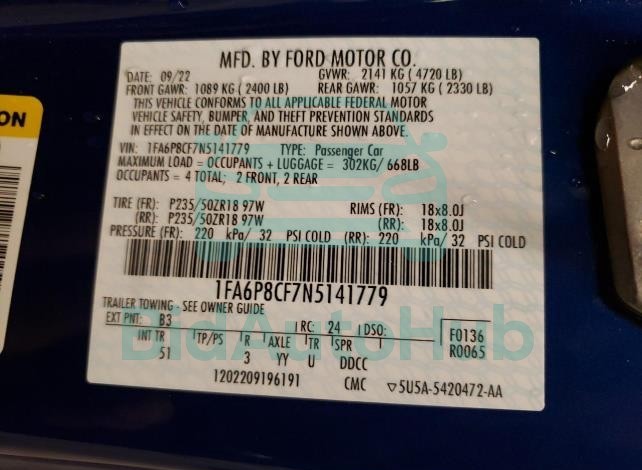 FORD MUSTANG 2022 — VIN: 1FA6P8CF7N5141779
