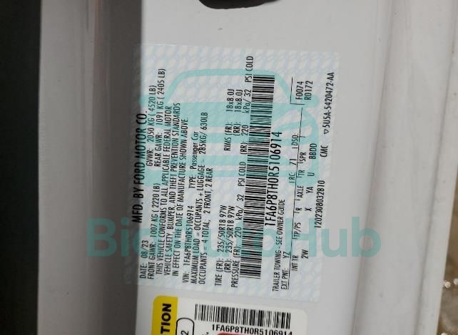 The FORD MUSTANG 2024 - VIN: 1FA6P8TH0R5106914 is equipped with a 2.3l 4 engine. This power unit is known for its efficiency and reliability, and it is part of modern generation of engines designed to balance performance with fuel economy. According to the auction data, the vehicle was registered with only 6120 miles of mileage at the time of sale.