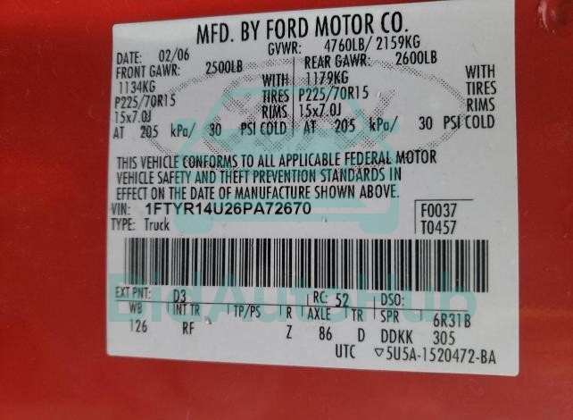 | VIN | 1FTYR14U26PA72670 |