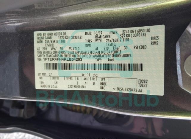 Each lot presented on our website includes comprehensive information tied to the VIN code. This allows users to cross-check vehicle data, verify the history of ownership, and confirm accident or insurance records. The FORD RANGER 2019 - VIN: 1FTER4FH4KLB04203 corresponds to a car that was listed through one of the large insurance auctions in USA, which guarantees traceability and transparency of the information.