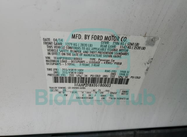 FORD TAURUS 2014 — VIN: 1FAHP2F8XEG180003