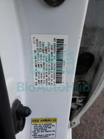 This HONDA ACCORD 2015 - VIN: 1HGCR2F51FA251857 was originally purchased at one of the major insurance auctions in the United States or Canada. The vehicle history is tied directly to its VIN code, which makes it possible to track the origin, condition, and circumstances of the sale. The photographs provided represent the actual state of the car at the moment of auction and serve as an important visual record of its technical and cosmetic condition.