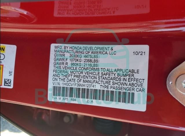 | VIN | 1HGCV1F39MA123741 |
