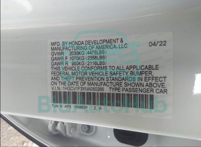 This HONDA ACCORD 2022 - VIN: 1HGCV1F3XNA050266 was originally purchased at one of the major insurance auctions in the United States or Canada. The vehicle history is tied directly to its VIN code, which makes it possible to track the origin, condition, and circumstances of the sale. The photographs provided represent the actual state of the car at the moment of auction and serve as an important visual record of its technical and cosmetic condition.