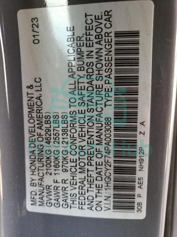| VIN | 1HGCY2F74PA003088 |