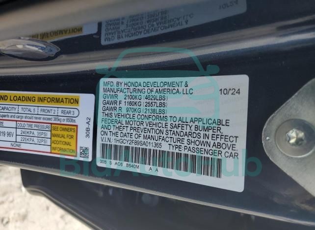 | VIN | 1HGCY2F89SA011365 |