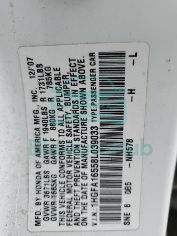 | VIN | 1HGFA16558L039033 |