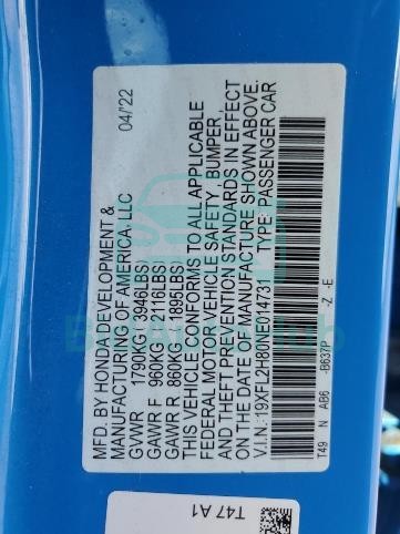 | VIN | 19XFL2H80NE014731 |