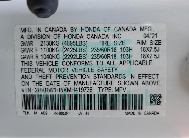 | VIN | 2HKRW1H5XMH419736 |