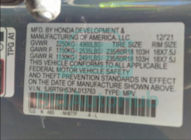 | VIN | 5J6RT6H53NL013763 |