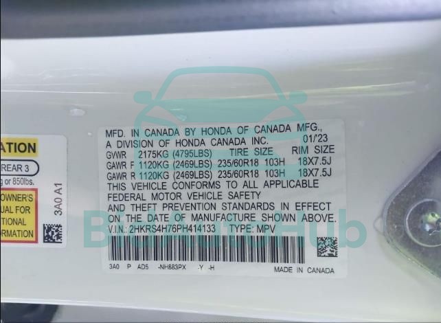 | VIN | 2HKRS4H76PH414133 |