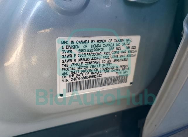 | VIN | 2HKYF18604H616242 |