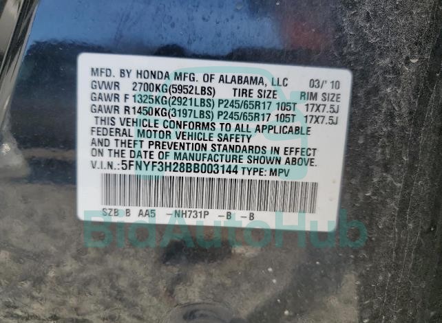 | VIN | 5FNYF3H28BB003144 |
