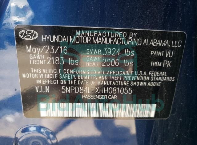 HYUNDAI ELANTRA 2017 — VIN: 5NPD84LFXHH081055