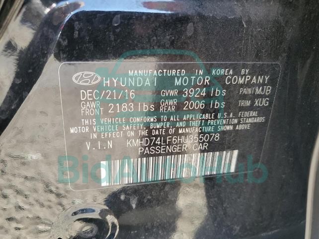 HYUNDAI ELANTRA 2017 — VIN: KMHD74LF6HU355078