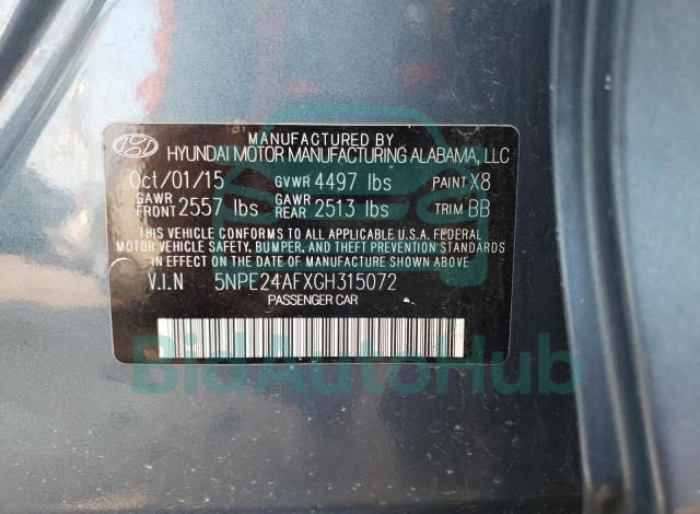 The HYUNDAI SONATA 2016 - VIN: 5NPE24AFXGH315072 is equipped with a 2.4l 4 engine. This power unit is known for its efficiency and reliability, and it is part of modern generation of engines designed to balance performance with fuel economy. According to the auction data, the vehicle was registered with only of mileage at the time of sale.