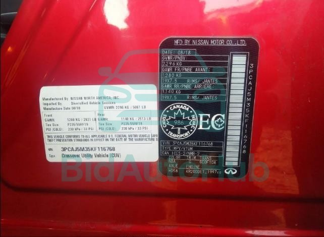 Each lot presented on our website includes comprehensive information tied to the VIN code. This allows users to cross-check vehicle data, verify the history of ownership, and confirm accident or insurance records. The INFINITI QX50 2019 - VIN: 3PCAJ5M35KF116768 corresponds to a car that was listed through one of the large insurance auctions in USA, which guarantees traceability and transparency of the information.